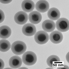 表面化學(xué)與涂料:我們的標準銀納米粒子具有多種不同的陰離子和陽(yáng)離子封端配體,從可置換的小分子到聚合物涂層。此外,我們可以制造具有特定官能團,聚合物,生物分子和無(wú)機涂層的納米材料。我們制造的定制水性溶劑相容性表面的實(shí)例包括聚乙烯醇(PVA),不同分子量和不同末端官能團的聚乙二醇(PEG),或生物分子如鏈霉抗生物素蛋白。我們使用無(wú)機涂層(如二氧化鈦(TiO2))涂覆顆粒,并將我們均勻且精確控制的二氧化硅涂層應用于我們標準產(chǎn)品之外的各種尺寸。我們還成功地制造了疏水性有機溶劑相容表面,如烷基硅烷,